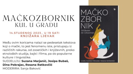 Kul u gradu: Mačkozbornik “Odabrale smo mačke kao posebnu kulturnoanimalističku temu našeg Mačkozbornika (Jesenski & Turk, Kulturno informativni centar, 2022), jer su nam bliske, jer živimo s njima, volimo ih i volimo misliti da ih poznajemo i da one vole nas. Mačke su naše prijateljice i pratiteljice, one nas tješe, zabavljaju i ohrabruju, smiruju i uspavljuju, uče nas strpljivosti i neovisnosti, eleganciji i profinjenosti” – napisala je u uvodu raskošnog…